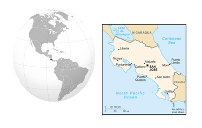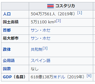 >>>コスタリカ共和国(スペイン語: República de Costa Rica),通称コスタリカは,中央アメリカ南部に位置する共和制国家。北にニカラグア,南東にパナマと国境を接しており,南は太平洋,北はカリブ海に面している。首都はサンホセである。 1949年に常備軍を廃止する憲法を成立させ常備軍を持たない国となったが,憲法によって非常時徴兵を規定している。 チリやウルグアイと共にラテンアメリカで最も長い民主主義の伝統を持つ国であり,中央アメリカでは例外的に政治的に安定が続き,かつ経済状態も良好な「中米の楽園」と呼ばれるほどの国家であったが,1990年代以降は麻薬の横行により治安の悪化と社会の不安定化が進行している。 ◆日本との関係 外交面では,コスタリカと日本は,自由主義。民主主義・資本主義,平和・軍縮,法の支配,環境等の基本的価値を共有する国際社会におけるパートナーであり,国連をはじめとした国際機関において協力を深めている。 1974年以降,国際協力機構(JICA)はコスタリカへの支援・協力の為,600人近くのボランティアを派遣し,地熱発電所の開設に際し2億4000万ドルを寄付している。また,日本はコスタリカの主要援助国である。2017年度にはコスタリカに対し3897万ドルの経済支援を行っており,これは続く米国の954万ドルやフランスの445万ドル,ドイツの272万ドル,韓国の184万ドルを大きく引き離して金額で第一位であった。一方でコスタリカはクリーンエネルギーに関する指導国であり,エネルギー政策の多様化を日本に支援している]。 貿易面では対日輸出が427.6億円,対日輸入が307億円となっておりコスタリカ側の黒字が続いている。輸出品としては,医療機器や特産品である熱帯フルーツ,コーヒー,医薬品が多い。日本からの輸入には,自動車製品が大きな割合を占め,次いで石油製品や携帯電話などである[3]。しかし,コスタリカにとっては輸入・輸出ともに最大の貿易相手国はアメリカ合衆国であり,次いで中南米諸国や中国が並ぶなか,日本は輸入面で第四位の貿易相手国である。 |